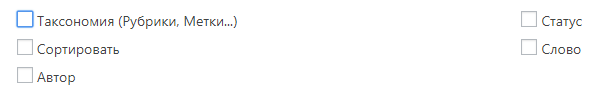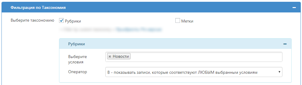 В блоке «Дополнительно» можно выбрать другие варианты сбора данных в ленту: рубрики, метки, статус записи/страницы, автора, ключевое слово.