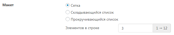 Адаптивный — это для настройки ленты на мобильных устройствах. Можно задать количество элементов в строке на мобильных и планшетах, от 1 до 4.