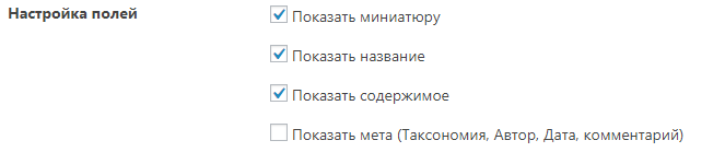 Настройка полей — тут настраивается что именно будет выводиться: миниатюра, название, содержимое, мета-информация (автор, дата комментарии).